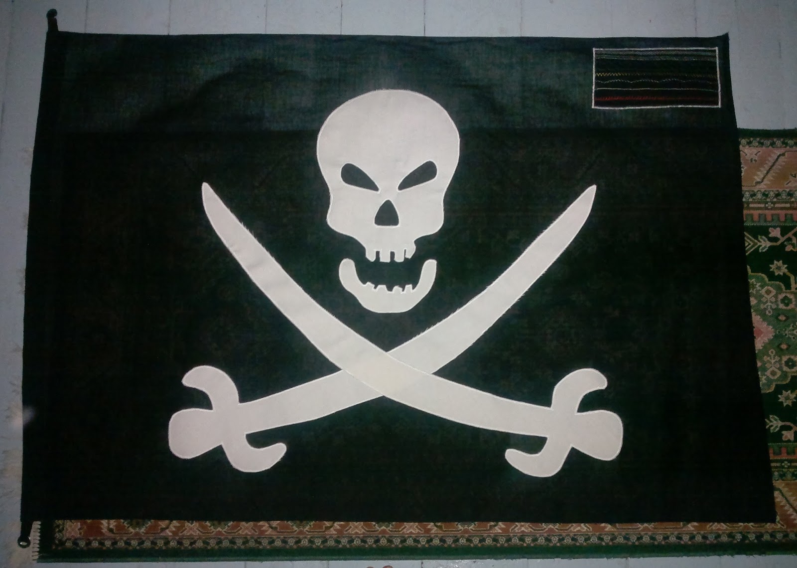Merirosvolipun kanssa auttoi siskoni Sari – minä ja Eemil-Eepi suunnittelimme lipun ja Sari-systerini taitavana ompelijana toteutti sen. Eemil-Eepi halusi lipusta sopivasti pelottavan ja tulihan siitä aikasta karmiva, vai mitä? 🙂