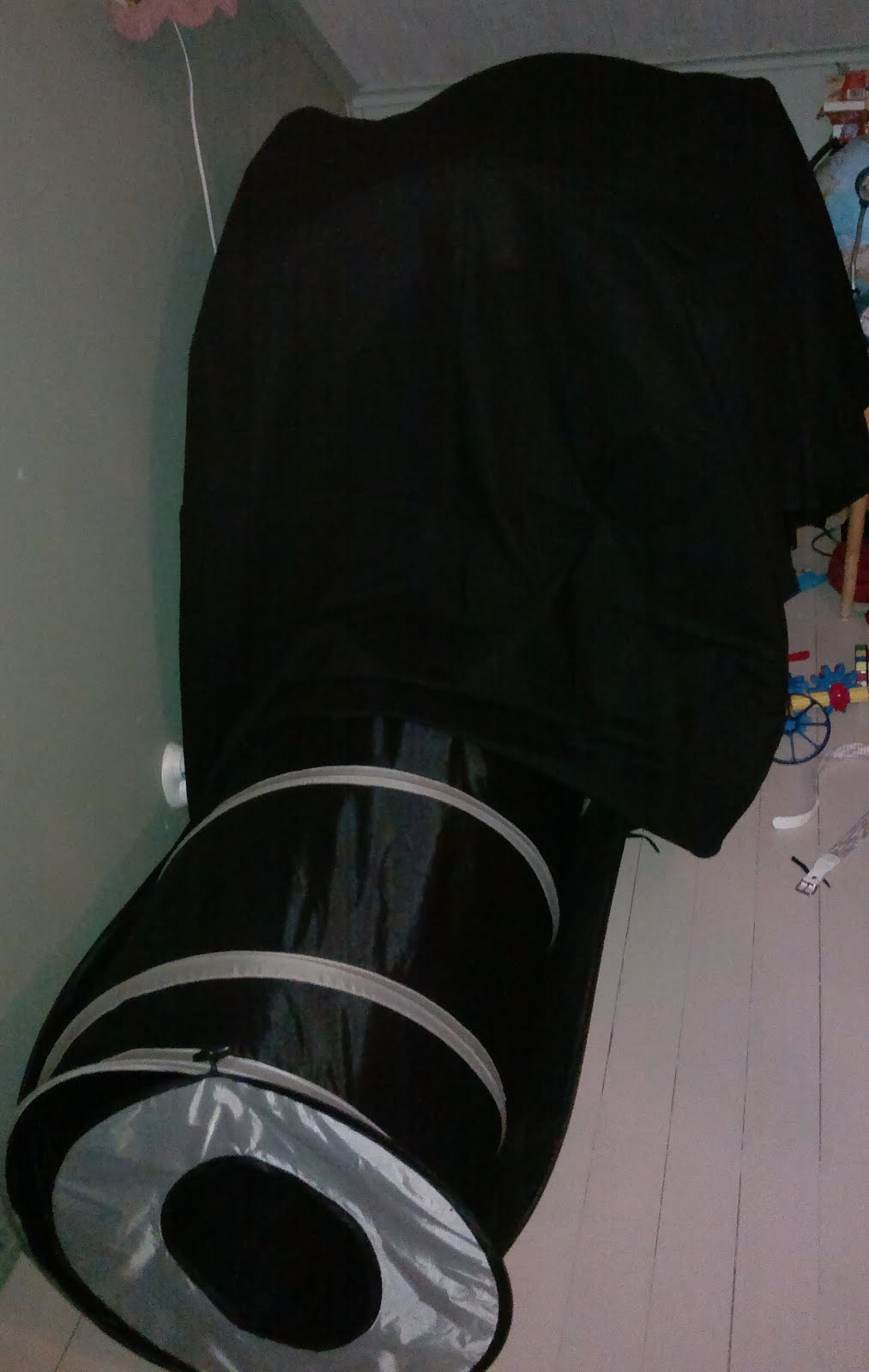 Helpoimmalla tällaisen luolan saa lasten teltasta ja leikkitunnelista – peitä sekä teltta että tunneli tummilla kankailla tai peitteillä niin, että sisälle tulee pilkkopimeää. Jos ei ole telttaa eikä putkea, voi tehdä luolan vaikkapa pöydän ja peitteiden avulla ja putken luolaan tuolien ja peitteiden avulla.
