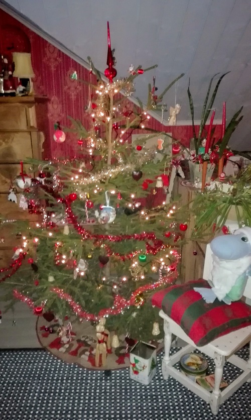 Reni ja lapset koristelivat pikkukuusen yhdessä aatonaattona, kun minä ähräsin suurensuuren kuusen kimpussa olohuoneessa. Ähräsin, sillä valtavan ja tuuhean kuusen lamputtaminen ja koristelu on aikaavievää puuhaa. Tarvitsin isot tikkaat, joiden kanssa touhutessa meinasin rikkoa kattolampun ja siinä roikkuvat lasipallot… 😱