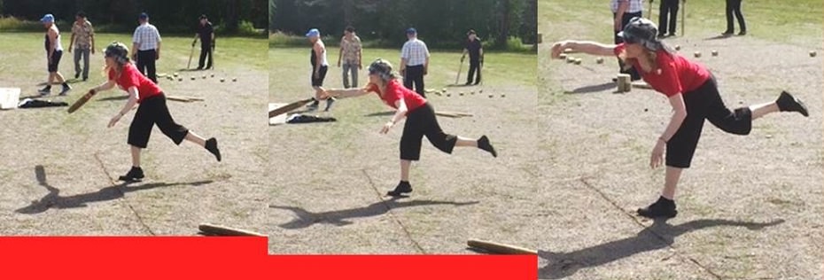 Kyykän pelaaminen käy tosiaankin urheilusta. Kartut painavat mallista riippuen 1-3 kiloa (liekö enemmänkin?) ja sitä kun nakkelee pitemmän aikaa 8-15 metrin päästä voimalla, koko kroppaa apuna käyttäen, niin kyllä kuulkaa tietää urheilleensa! Onneksi ei kisoissa ollut kuin kolme naisjoukkuetta! 😅