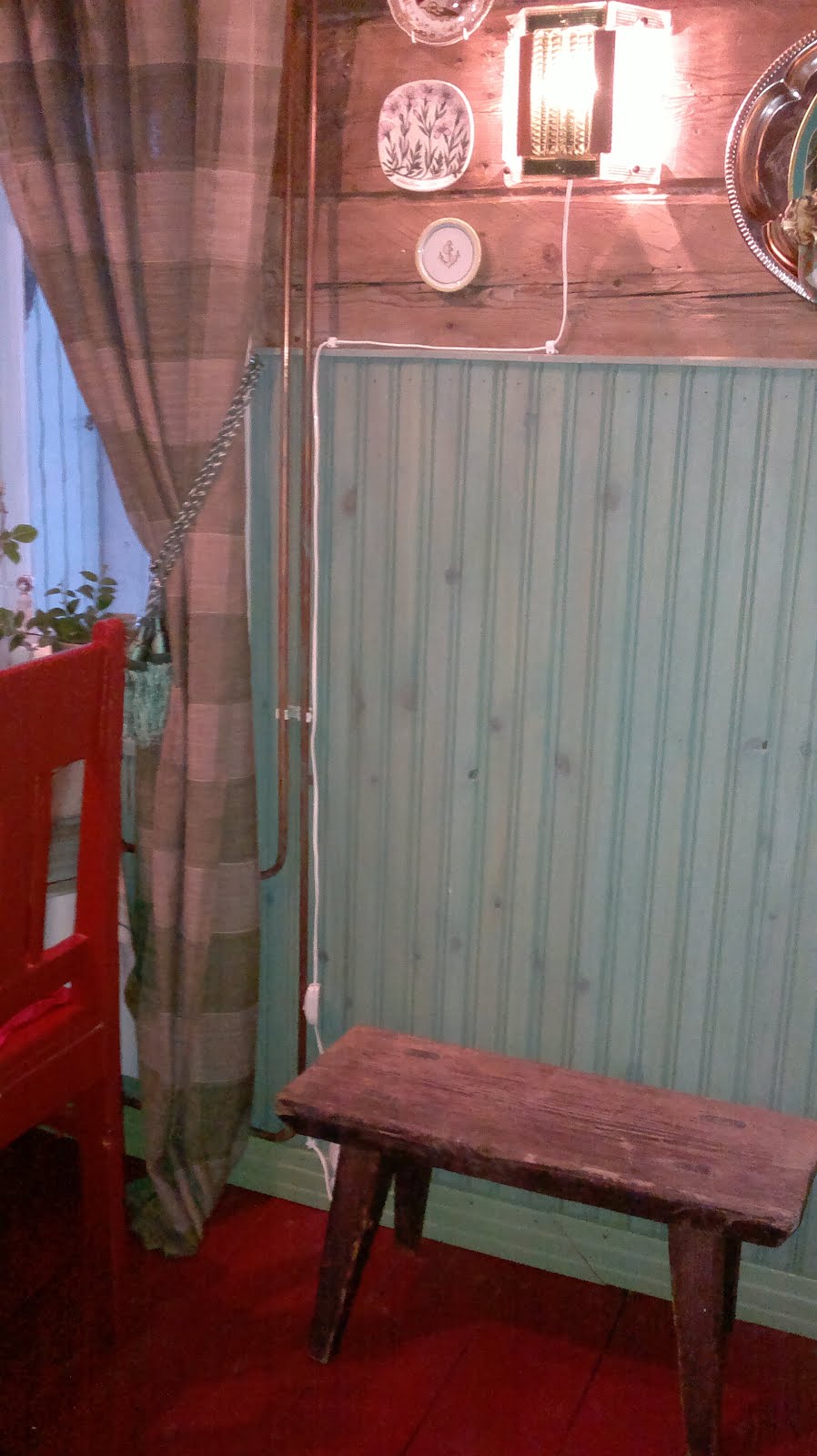 Aiemmin kerroin alakerran wc:stämme. Joko arvasitte, millä maalilla paneeliseinät on maalattu? 😉 Maalasin ne itse tekemälläni munatemperalla eli kananmunasta, pellavaöljystä, vedestä ja luonnon värijauheista tehdyllä seoksella. Maali on taatusti myrkytön ja luonnonmukainen!